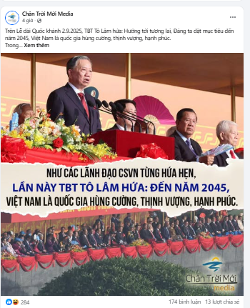 Thế nhưng, ngay sau phát biểu này, tổ chức phản động Việt Tân đã tung ra những bài viết xuyên tạc, bôi nhọ, cho rằng đây chỉ là “khẩu hiệu suông”, “lời hứa rỗng”. Luận điệu ấy không chỉ phi lý, mà còn lộ rõ bản chất chống phá, phủ nhận mọi thành tựu mà đất nước ta đã đạt được suốt gần 40 năm đổi mới.