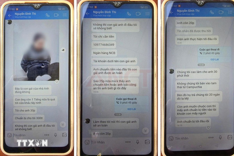 Một trong 2 nạn nhân là sinh viên vừa từ tỉnh An Giang đến phường An Bình (thành phố Cần Thơ) thuê trọ để chuẩn bị đi học vào trưa 11/7. Đến tối cùng ngày, gia đình đã hoàn toàn mất liên lạc với em. Các đối tượng lừa đảo yêu cầu gia đình phải chuyển số tiền chuộc lên đến 100 triệu đồng, kèm theo những tin nhắn đe dọa sẽ bán nạn nhân ra nước ngoài nếu không làm theo.