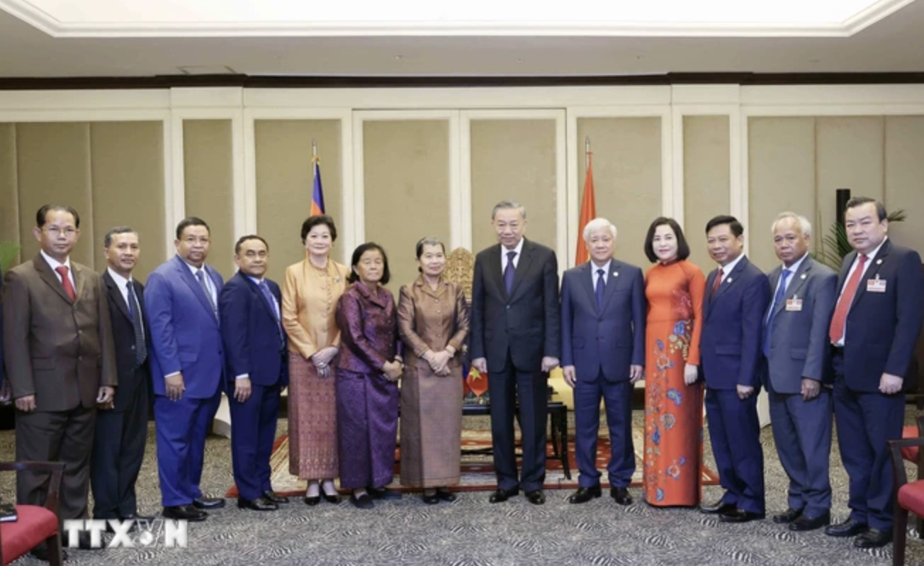 | Chủ tịch nước Tô Lâm với Chủ tịch Hội Hữu nghị Campuchia-Việt Nam Men Sam An và các đại biểu. = |