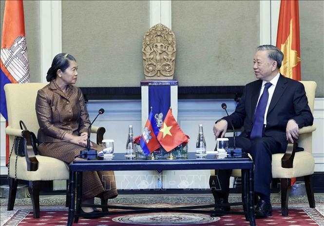 Tiếp tục chương trình chuyến thăm cấp Nhà nước tới Vương quốc Campuchia, sáng 13/7, Chủ tịch nước Tô Lâm đã có buổi tiếp Chủ tịch Hội Hữu nghị Campuchia – Việt Nam Samdech Men Sam An.
