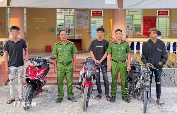 Khi nhóm thanh, thiếu niên tụ tập thực hiện hành vi bốc đầu xe chạy bằng một bánh thì bị tổ công tác ập tới bắt quả tang; cả người và xe được đưa về trụ sở công an làm việc.