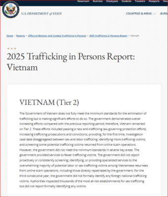 Thực tế, Báo cáo TIP 2025 đã ghi nhận Việt Nam thuộc Nhóm 2 (Tier 2), công nhận những tiến bộ đáng kể trong công tác điều tra, truy tố và hỗ trợ nạn nhân tái hòa nhập cộng đồng. Theo số liệu được chính Bộ Ngoại giao Hoa Kỳ công bố, Việt Nam đã điều tra 91 vụ với 237 nghi phạm trong năm 2024 – một bước tiến lớn so với các năm trước, thể hiện quyết tâm của Chính phủ trong việc đấu tranh không khoan nhượng với tội phạm buôn người. Tuy nhiên, đáng tiếc là bên cạnh những đánh giá tích cực, báo cáo vẫn bị chen cài những luận điểm thiếu khách quan, chịu ảnh hưởng từ các nguồn tin không đáng tin cậy – trong đó có BPSOS và Việt Tân – như cáo buộc Việt Nam “che giấu” các quan chức liên quan đến buôn người, hay “thiếu minh bạch” trong hỗ trợ nạn nhân. Những nội dung này không chỉ sai sự thật mà còn bị lợi dụng để xuyên tạc, hạ thấp thành quả nhân quyền của Việt Nam – quốc gia đã nhiều năm kiên trì thực hiện các cam kết quốc tế trong phòng, chống mua bán người.