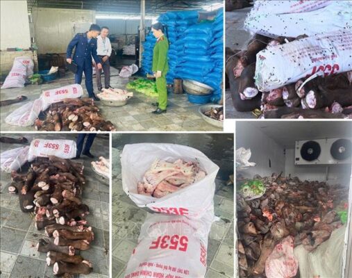 Tối 27/2, theo thông tin từ Công an tỉnh Thanh Hóa, sáng cùng ngày, Phòng Cảnh sát kinh tế Công an tỉnh Thanh Hóa chủ trì phối hợp với Chi cục An toàn vệ sinh thực phẩm và Đội Quản lý thị trường số 09, Chi cục Quản lý thị trường Thanh Hóa tiến hành kiểm tra đột xuất hai kho lạnh đồng thời là cơ sở thu mua, chế biến xương, đuôi, chân trâu, bò trên địa bàn xã Hoàng Giang và xã Thọ Long, tỉnh Thanh Hóa. Qua kiểm tra, lực lượng chức năng đã phát hiện, thu giữ 6 tấn hàng không rõ nguồn gốc, bốc mùi hôi thối…