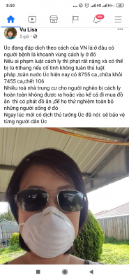 Chị Lisa Vũ, một Việt kiều lâu năm ở Úc mới đăng stt trên Facebook của chị, khen Úc chống dịch hiệu quả vì làm theo cách thức phong toả, khoanh vùng, cách ly để dập dịch theo cách của...