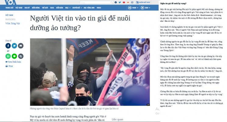 Trong bài phỏng vấn của VOA có tên “Người Việt tin vào tin giả để nuôi dưỡng ảo tưởng?” ngày 5-3-2021 với ông Trần Nhật Bảo, được quảng bá là một chuyên gia về tội phạm học từng giảng dạy...