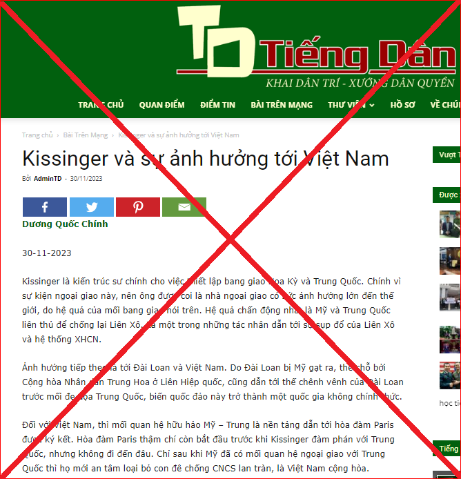 Việc Mỹ phải rút quân khỏi Việt Nam là điều bắt buộc. Mỹ không có sự lựa chọn nào khác, đừng đổ lỗi cho Kissinger hay bất cứ một lãnh đạo nào khác của nước Mỹ như giọng điệu của...