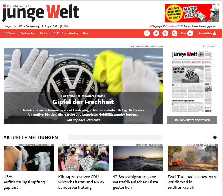 Vừa qua, nhà xuất bản, ban biên tập tờ nhật báo ở Đức có tên Junge Welt (Thế giới trẻ ) phát đi lời “Kêu gọi quyền tự do báo chí và tự do ngôn luận” với tố cáo rằng,...