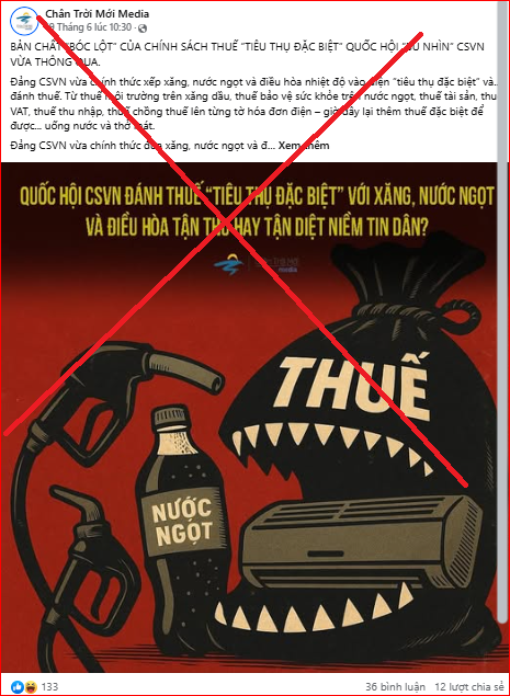Ngày 14/6/2025, với hơn 93% đại biểu tán thành, Quốc hội đã thông qua Luật Thuế tiêu thụ đặc biệt (sửa đổi). Ngay sau đó, các trang chống phá như “Chân Trời Mới Media” vội vã tung ra những bài viết bóp méo, xuyên tạc bản chất của chính sách này, vu cáo Nhà nước “bóc lột dân”, “đánh thuế vào quyền sống”. Đó không chỉ là ngụy biện mà còn là một thủ đoạn chính trị nguy hiểm.