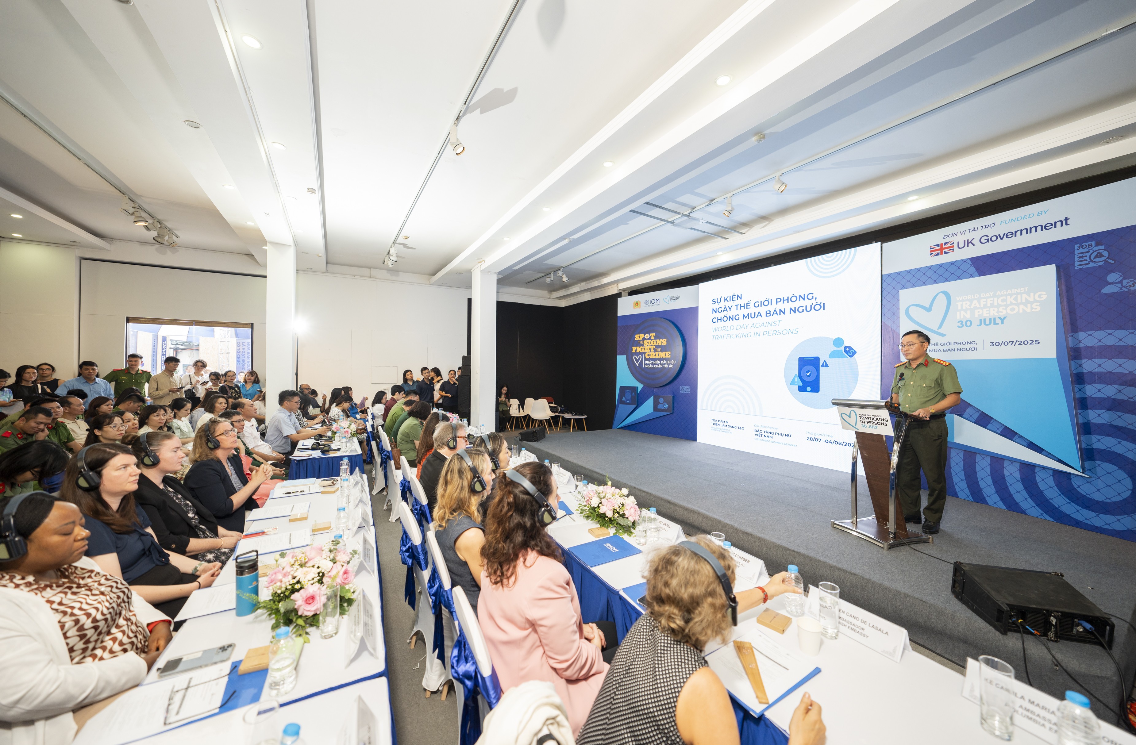 Phát biểu tại sự kiện, Đại tá Lê Hoàng Dương, Phó Cục trưởng Cục Đối ngoại (Bộ Công an) cho biết, quan điểm nhất quán của Đảng, Nhà nước Việt Nam là ghi nhận, bảo vệ và bảo đảm các quyền con người, đặc biệt là phụ nữ và trẻ em. Chương trình quốc gia về phòng, chống mua bán người các giai đoạn đều huy động sự vào cuộc, tham gia của cả hệ thống chính trị, các bộ, ban, ngành và mọi người dân; trong đó, lấy phòng ngừa là chính, là yếu tố căn bản trong triển khai các mặt công tác. Đáng chú ý, Luật Phòng, chống mua bán người năm 2024, có hiệu lực từ ngày 01/7/2025, đã bổ sung các nguyên tắc quan trọng nhằm đáp ứng yêu cầu thực tiễn, phù hợp với các điều ước quốc tế mà Việt Nam là thành viên, đặc biệt là nguyên tắc “lấy nạn nhân làm trung tâm”, mở rộng đối tượng được bảo vệ cũng như chế độ hỗ trợ cho nạn nhân.