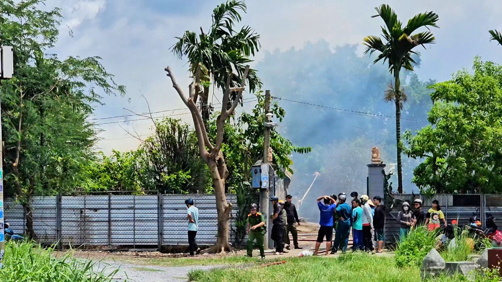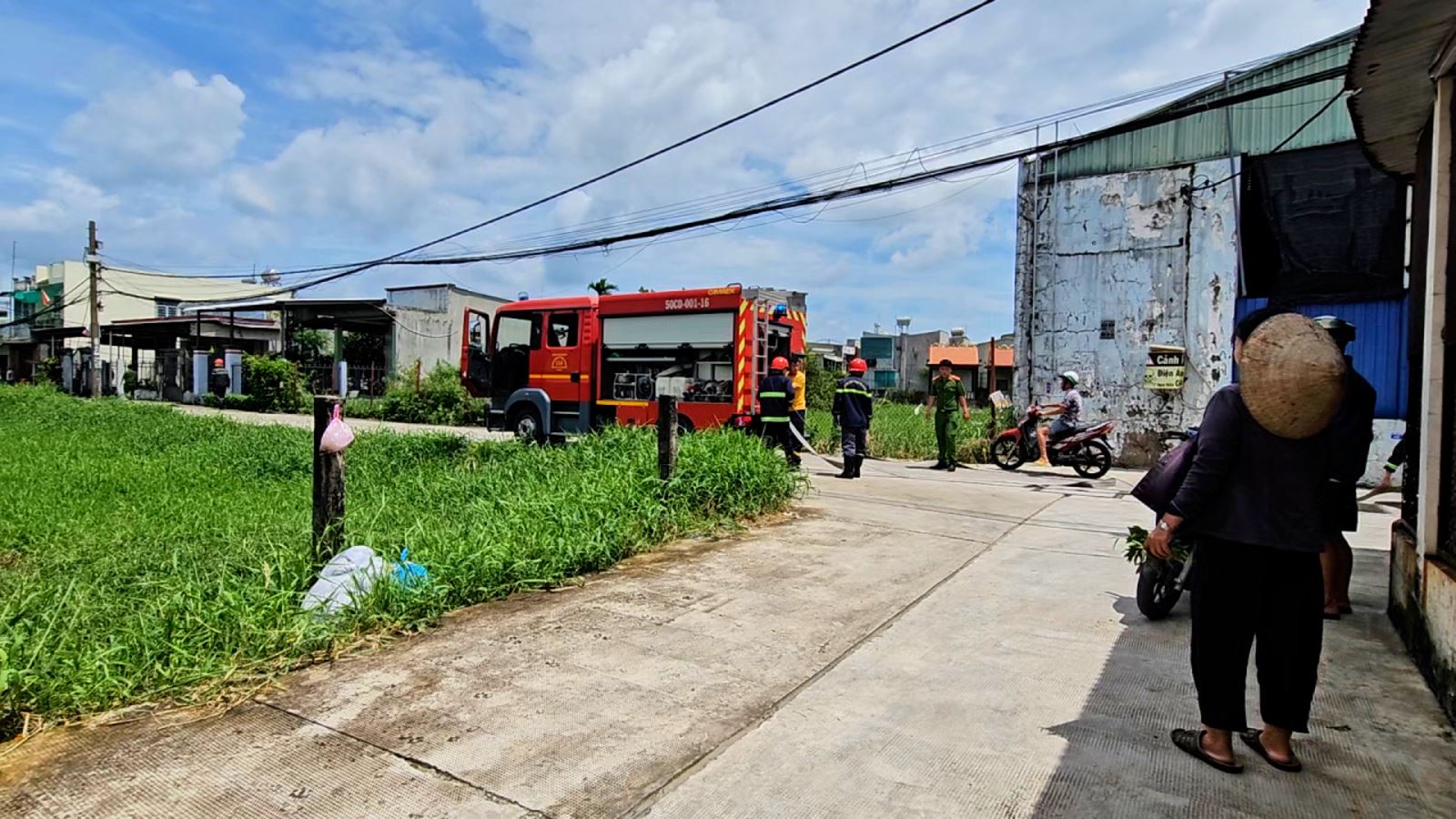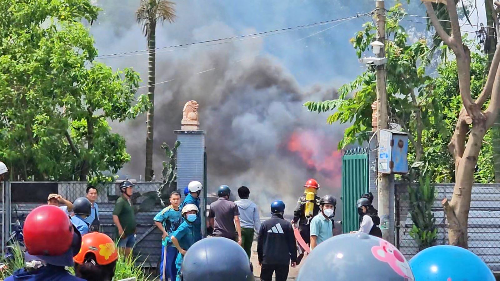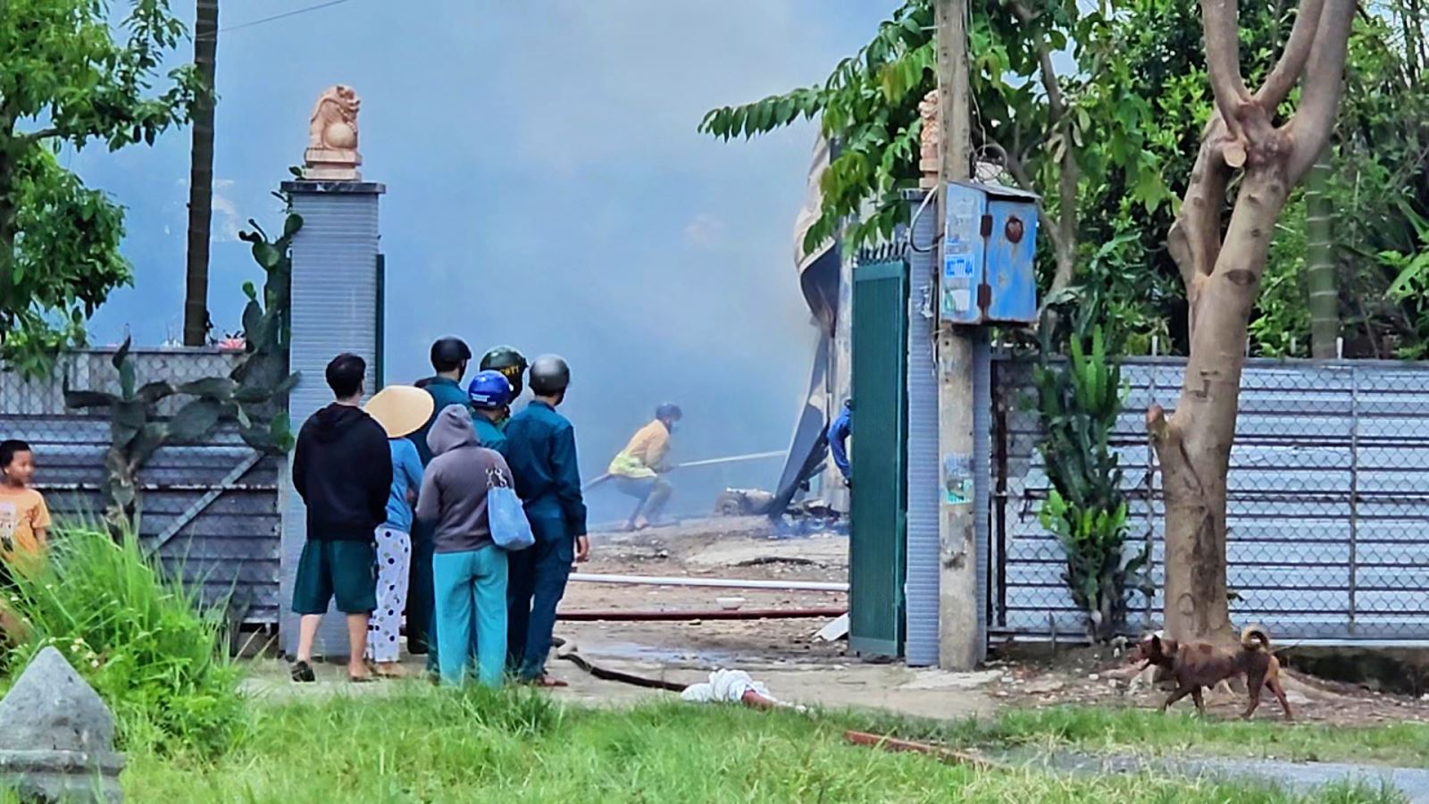 Lo sợ cháy lan sang các công trình liền kề, một số nhà dân và xưởng sản xuất gần đó đã chủ động dùng vòi nước phun vào các khu vực xung quanh để làm mát, đồng thời nhanh chóng thông báo cho lực lượng chức năng.