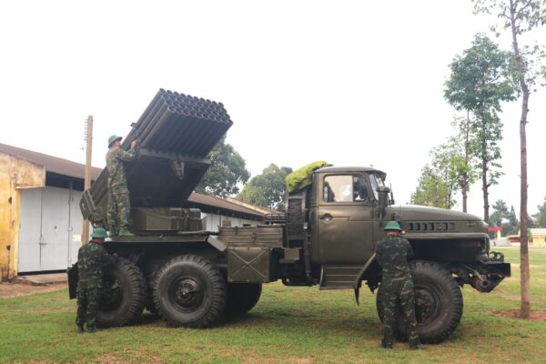 | Cán bộ, chiến sĩ Quân đoàn 34 bảo quản vũ khí, khí tài. |