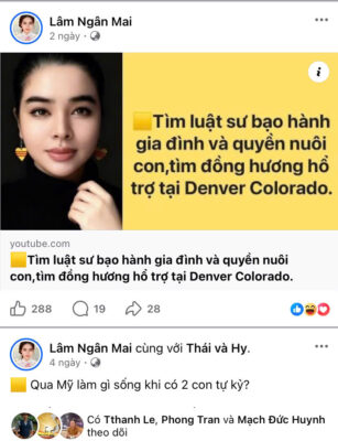Cách đây chưa đầy một tuần, trên Facebook và YouTube, Lâm Ngân Mai – người phụ nữ từng nổi tiếng với những phát ngôn mạnh mẽ, áo vàng ba que, hát hò chống cộng và tự ứng cử Quốc hội với khẩu hiệu đòi “dân chủ, nhân quyền” – đã công khai khóc nghẹn kêu cứu. Cô xin donate khẩn cấp qua PayPal, xin luật sư miễn phí, xin sự giúp đỡ từ chính cộng đồng Việt Nam mà trước đây cô không ngớt chỉ trích. Thiên đường Mỹ mà cô từng mơ mộng sáu năm trước giờ hóa thành nỗi tuyệt vọng thực sự: bị chồng người Mỹ bạo hành gia đình, kiện tụng kéo dài nhưng thua kiện, bị tước quyền nuôi con (trong đó có con tự kỷ cần chăm sóc đặc biệt), cắt trợ cấp, khánh kiệt tài chính và bất lực vì không thông thạo tiếng Anh.