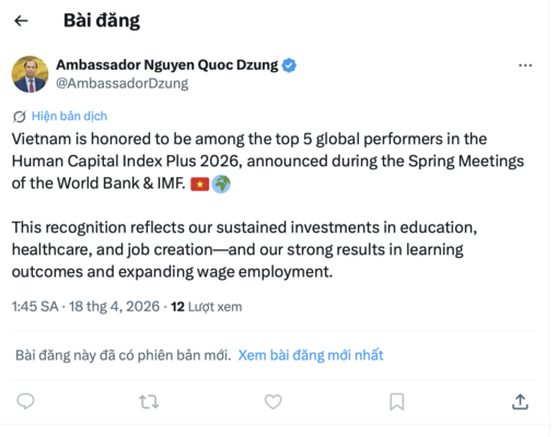 | Bài đăng trên mạng xã hội X của Đại sứ Nguyễn Quốc Dũng. |
