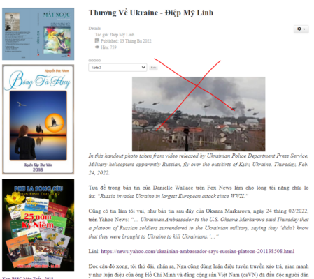 Trở lại cuộc xung đột Nga-Ukraine đang diễn ra, hơn 2 triệu người dân Ukraine đang phải tìm đường lánh nạn thì việc “thương về Ukraine” là một nghĩa cử đáng trân trọng, nhưng lợi dụng nó để xuyên tạc, bóp méo lịch sử nhằm bao biện cho những hành vi tội lỗi, tay sai, bán nước của mình của tàn quân VNCH là điều không thể chấp nhận.