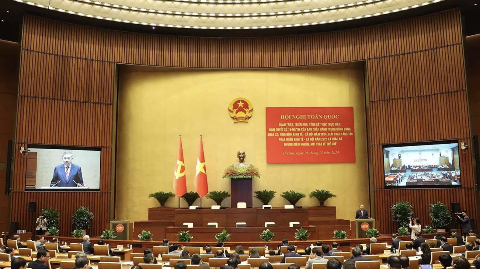 | Tổng Bí thư Tô Lâm phát biểu chỉ đạo Hội nghị toàn quốc quán triệt, triển khai tổng kết việc thực hiện Nghị quyết số 18-NQ/TW. |