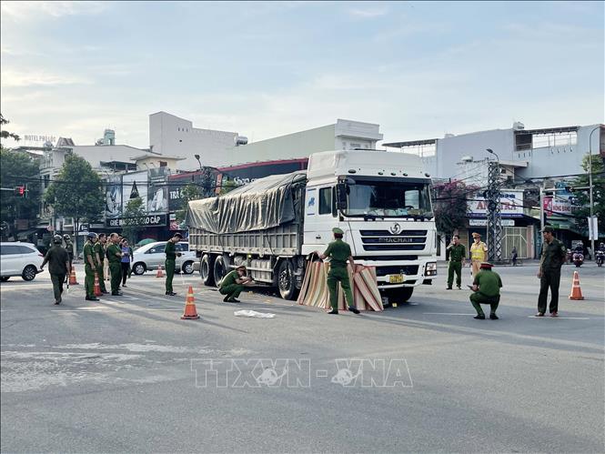 Công an tỉnh Quảng Ngãi đang phối hợp với lực lượng chức năng phong tỏa hiện trường, phân luồng giao thông điều tra nguyên nhân vụ tai nạn.